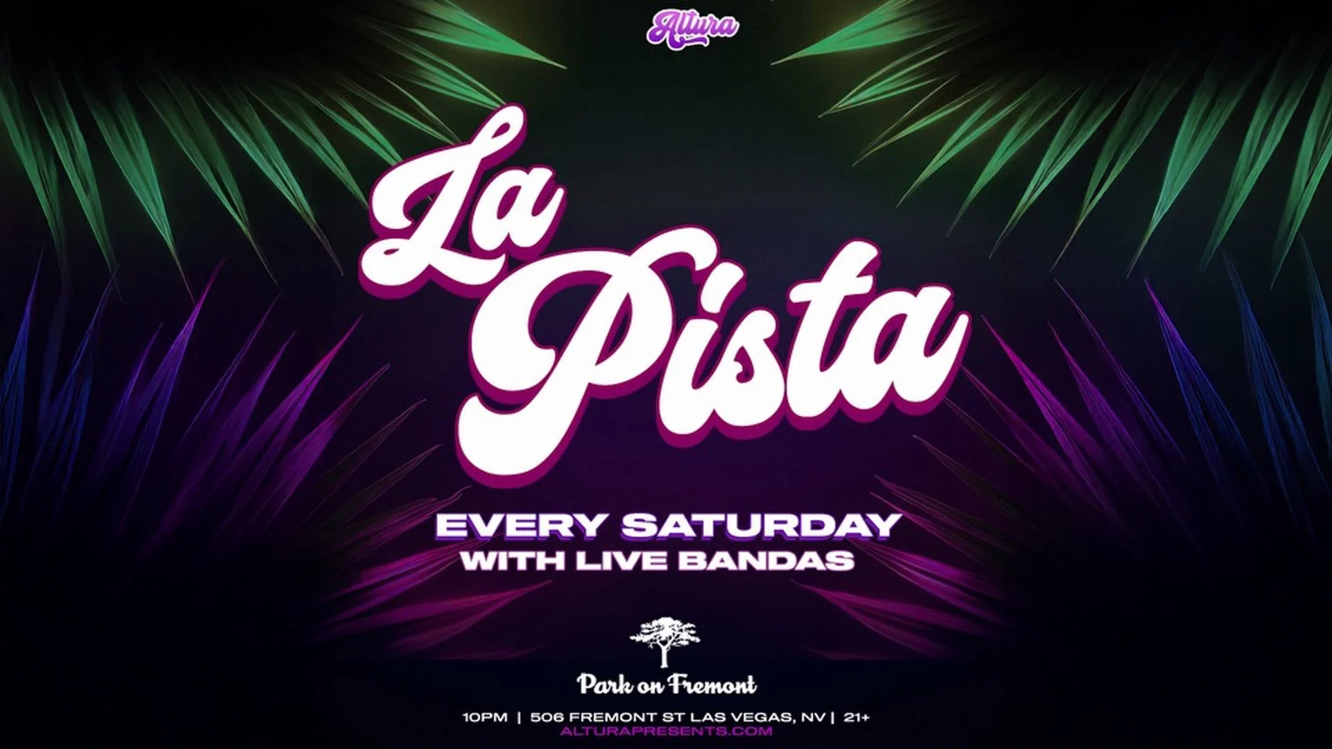 Back to All Events LA PISTA Saturday, November 9, 2024 10:00 PM Sunday, November 10, 2024 3:00 AM Park on Fremont 506 Fremont Street Las Vegas, NV, 89101 United States (map) Google Calendar ICS SAT I 11.09 I 10PM Get ready to move! La Pista is bringing the party to Park on Fremont every Saturday 10 PM on the back patio, featuring live music by different Grupos! Join us for a night of dancing, great vibes, and all the energy you need to keep the party going. TICKETS